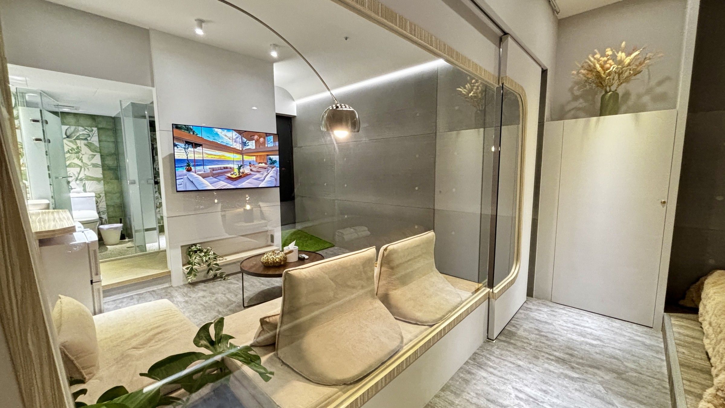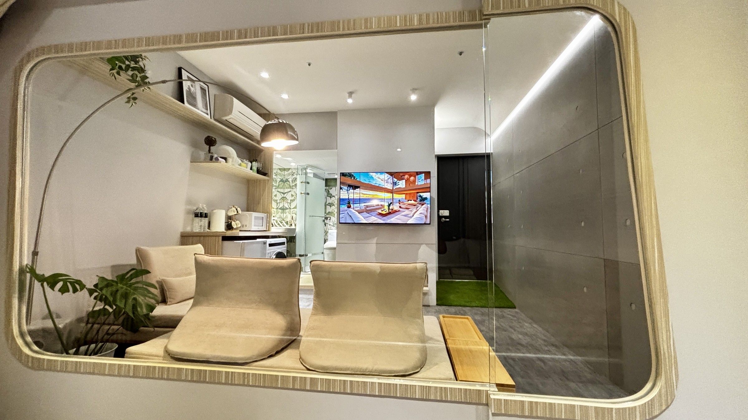 Push open the door, and you are greeted by a spacious and comfortable layout, with the bedroom and living room separated for extra freedom during your stay. The large floor-to-ceiling window by the bed frames the majestic Taipei skyline by day and transforms into a glittering sea of stars by night. With Taipei 101 standing right before your eyes, both the vibrant daytime view and the dazzling nightscape will become the most romantic memories of your journey.