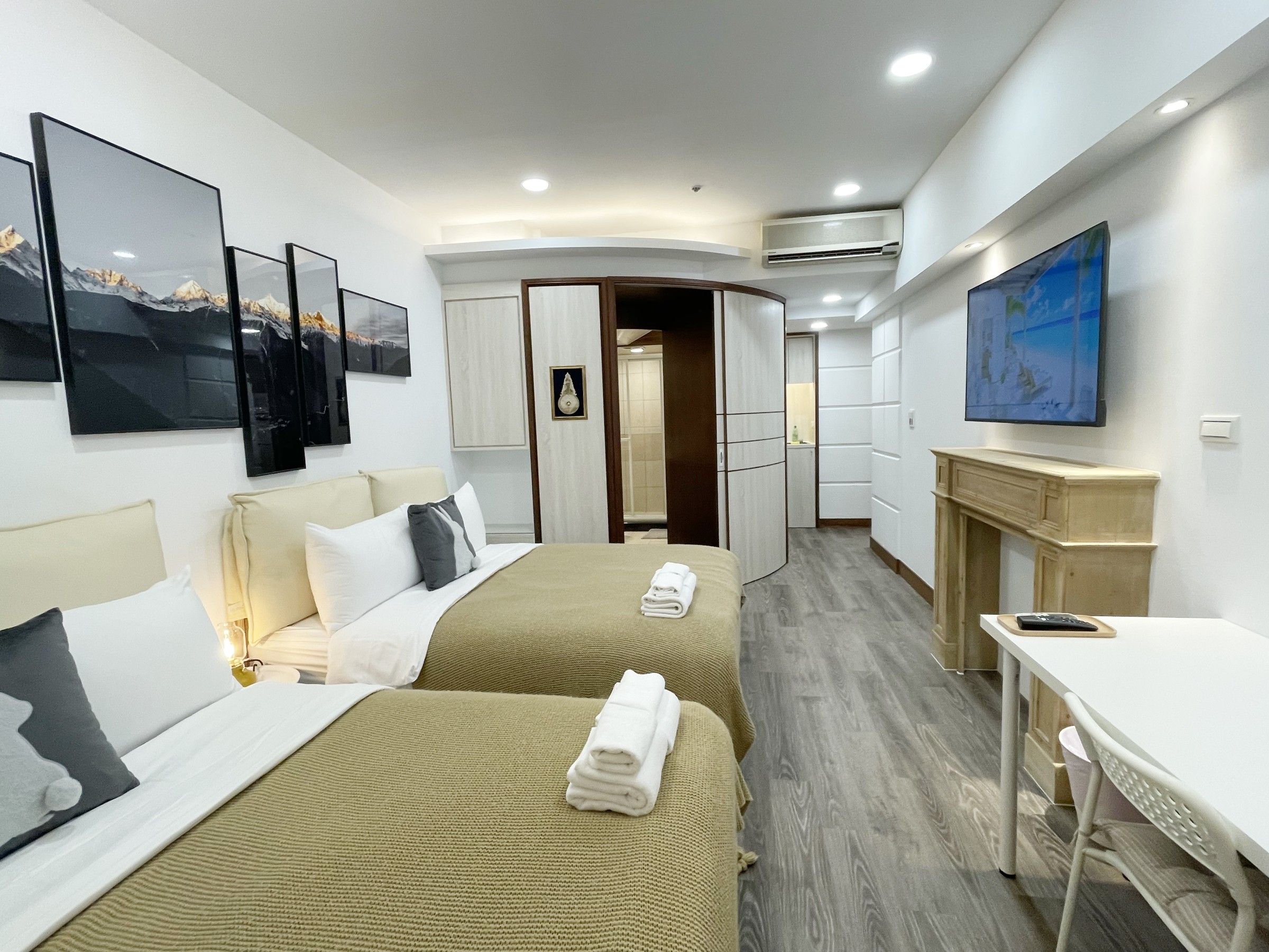 住宿結合高級飯店的舒適與居家機能,設備齊全又便利。房內配置洗烘一體洗衣機,貼心附上洗衣精;簡廚區完整規劃,包含微波爐、電磁爐及鍋碗餐具,隨時都能簡單料理。無論家庭旅行或長期入住,都能體驗到兼具便利與舒適的理想空間,CP值滿分。